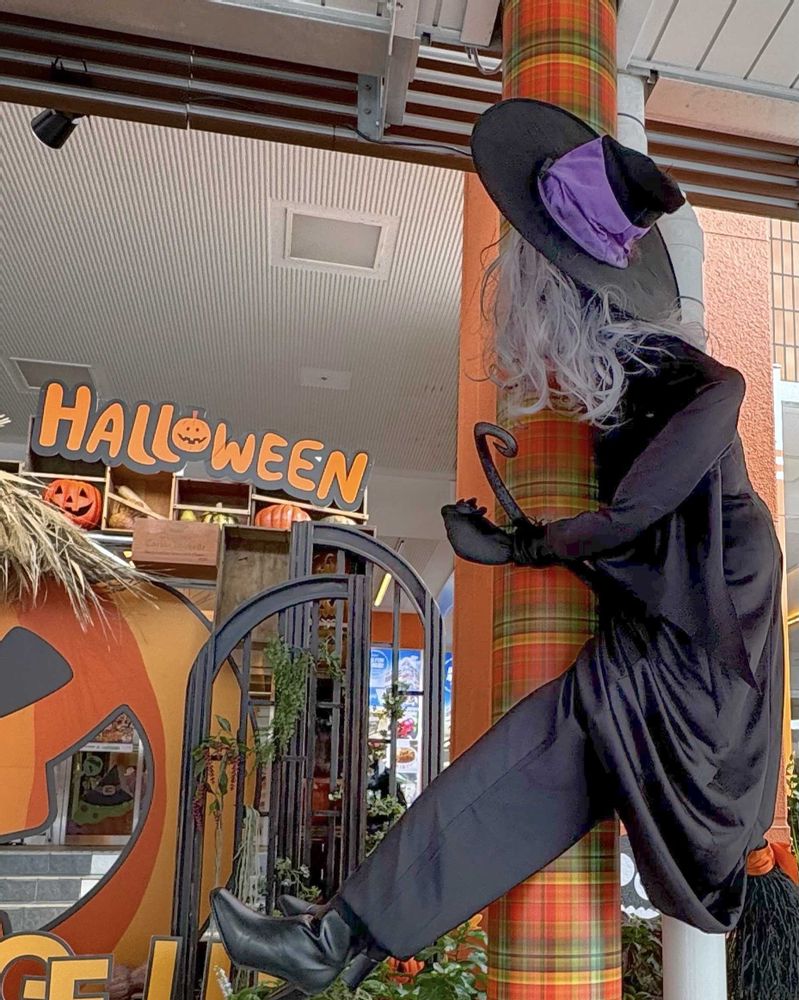 ハロウィンシーズン飾りと並んでます、なんだか南国のようですね