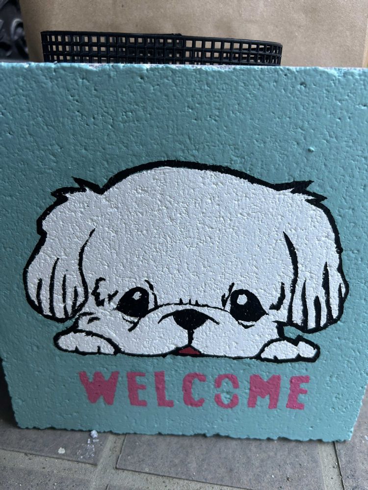 わちゃわちゃ市で可愛いわんちゃんの傘立て(ブロックにペイントされています)