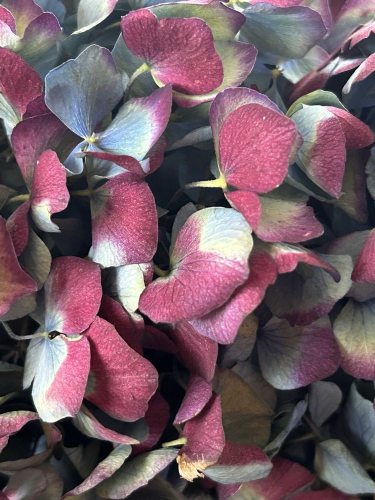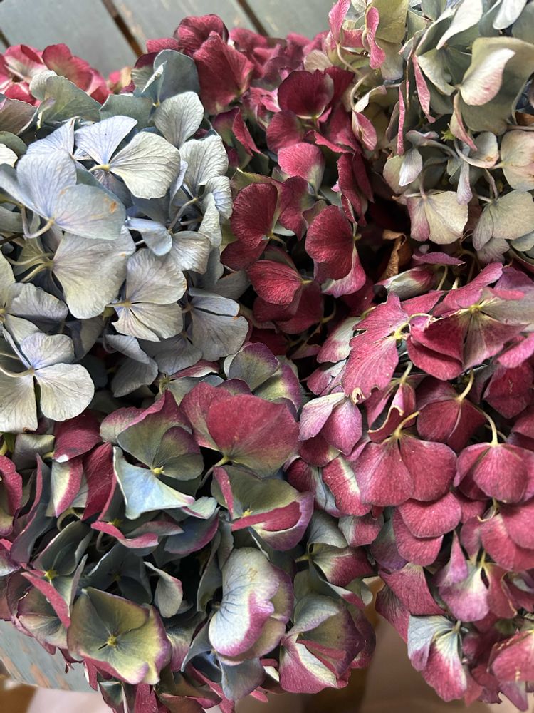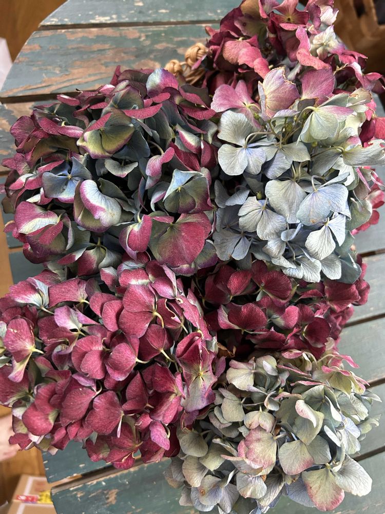 北海道から届いた秋色紫陽花🩵から❤️に変化色が濃い