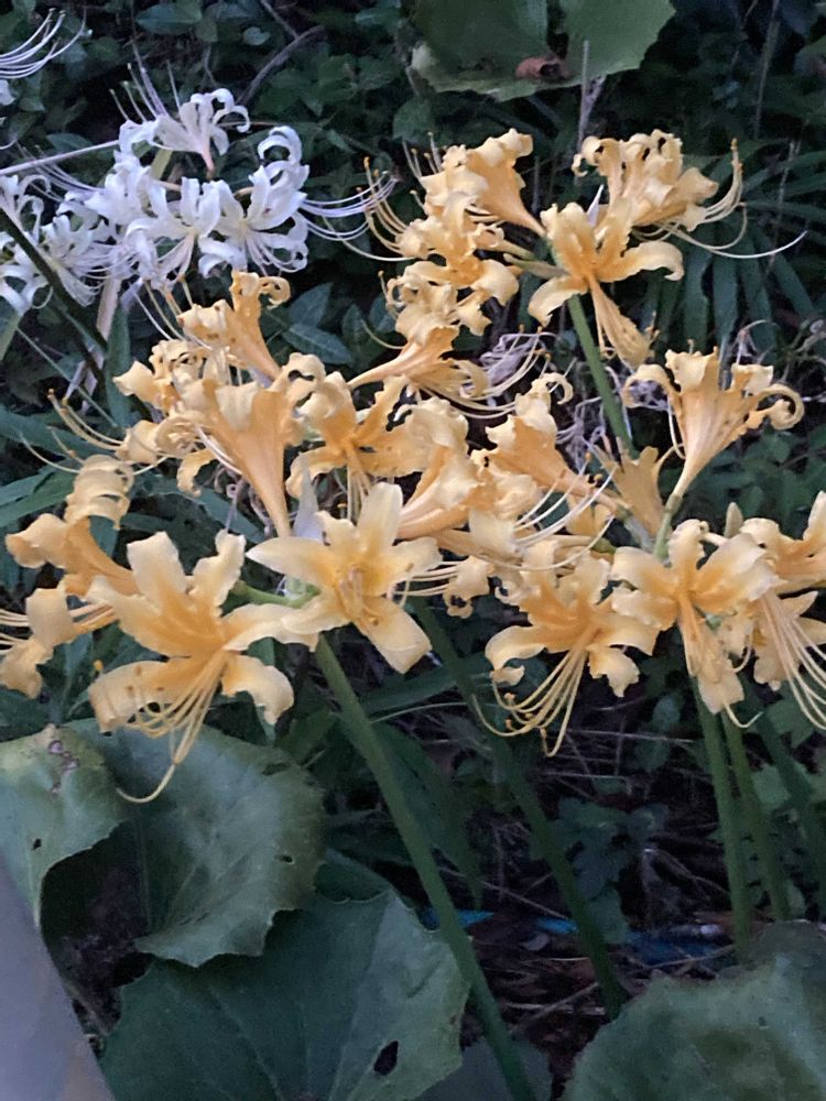シロイロヒガンバナは赤と黄色の交配種だそう!ビックリ‼️