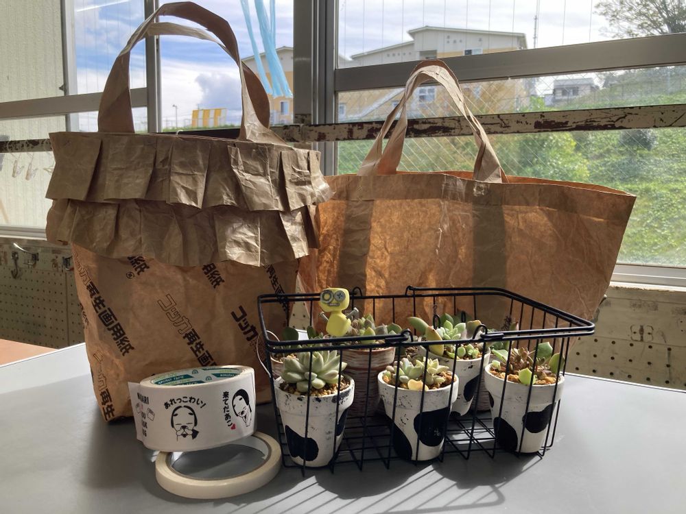 早速、大小様々なバッグを作り、多肉を入れてプレゼントしたら、喜び倍増でした。