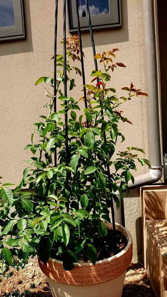 我が家のつるバラさん、鉢底から根が出てたので鉢増ししました‼️どんどん蕾がつくけど、今はガマン😣摘蕾してます😭💦💦