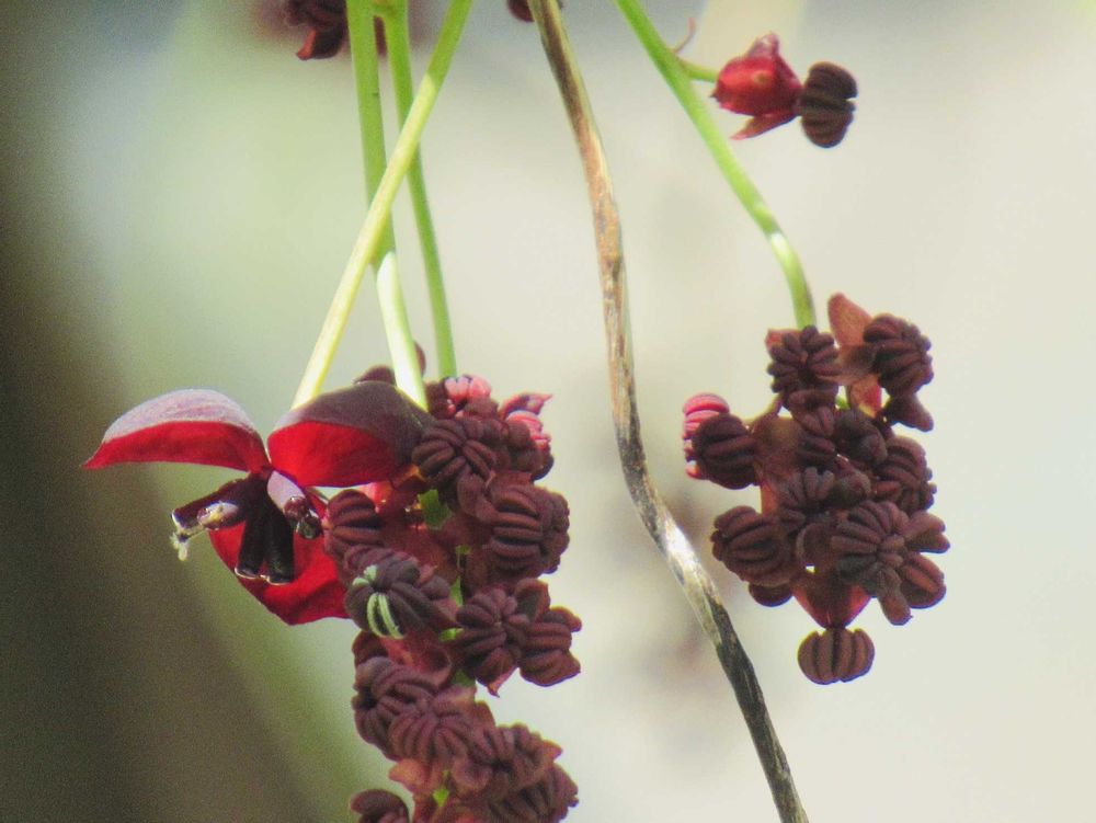 うちのアケビの花より赤っぽくて綺麗❤️゚❀.(*´▽`*)❀.゚❤️