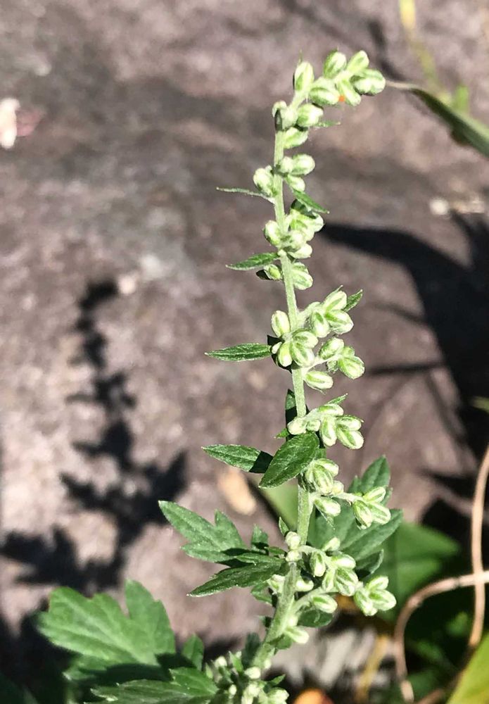 庭で、ヨモギの花が咲いていました。