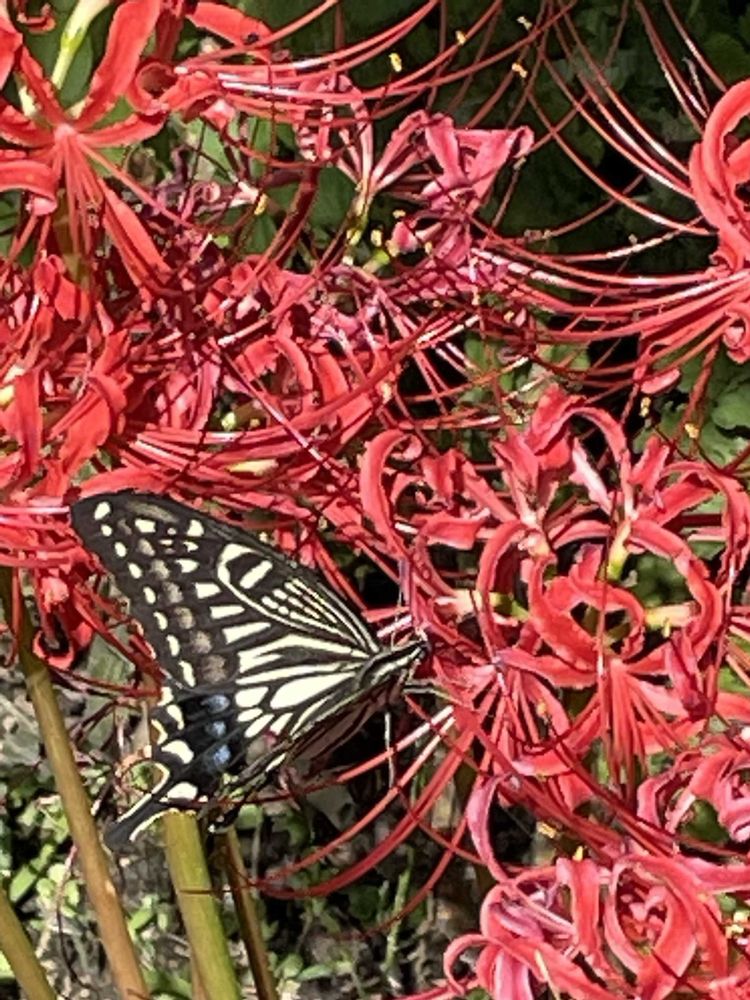 昨日 終わりかけのヒガンバナ(彼岸花)にアゲハチョウが休憩してたのを🤳