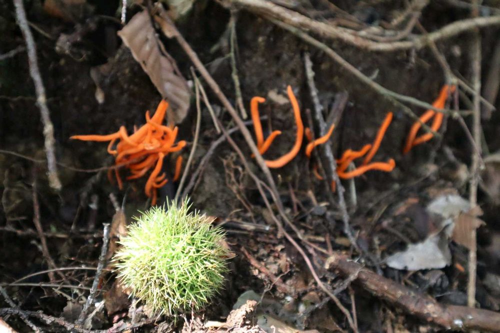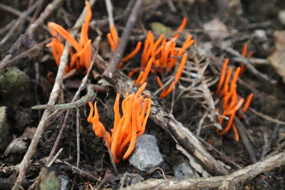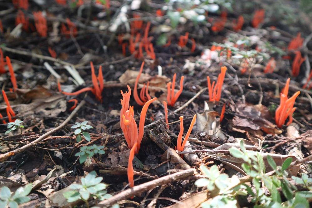 ソウメンタケのオレンジ版だと思ってたのですが、ベニナギナタタケとグーグルレンズは答えました。