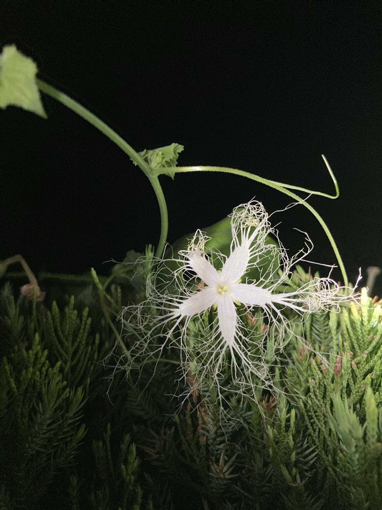 4枚目にもアップしたのですが、7/29の真夜中に🤭頭にライト付けて💡脚立に登って🪜夜だけのお花を見ることが出来ました🤍✨
