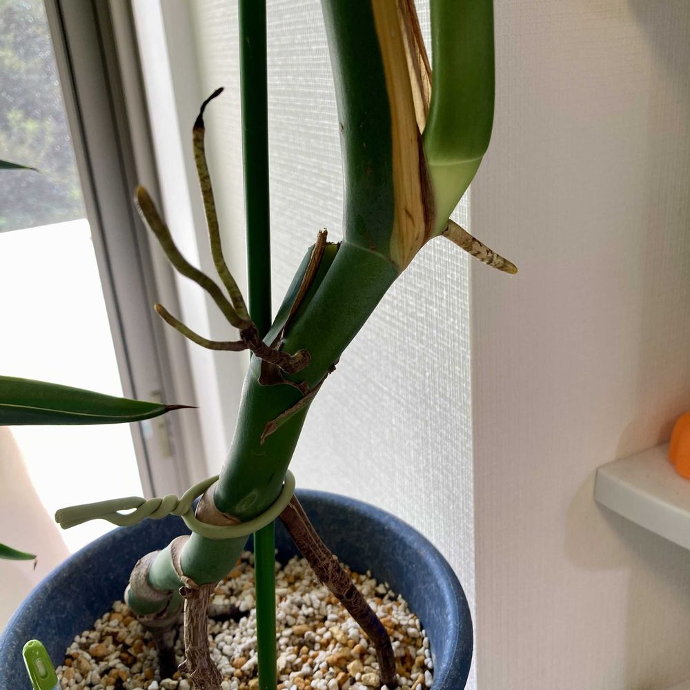 モンステラさんは観察してると面白い🤣です〜😊 三又の気根とぶっとい気根が出て来た😊どう伸びていくか楽しみです😊