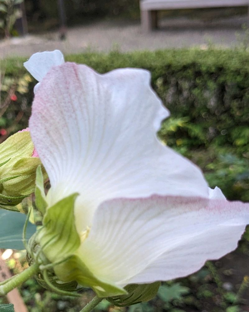 酔芙蓉が色付き始めました花びらの外側からほんのりピンク🩷に染まり始めました🩷