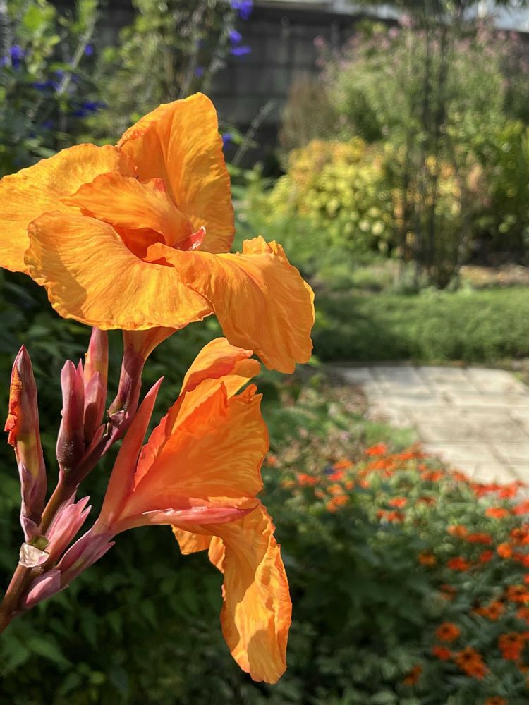昨日アサギマダラが飛来した従姉妹のガーデンに最後のカンナが綺麗に咲いていた🧡