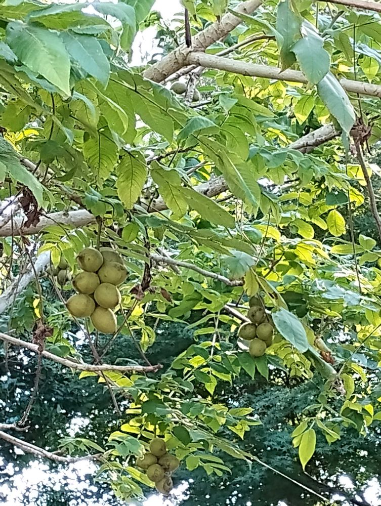 胡桃がなってるの、初めてみました。私なら、見ても胡桃って分からないな😅