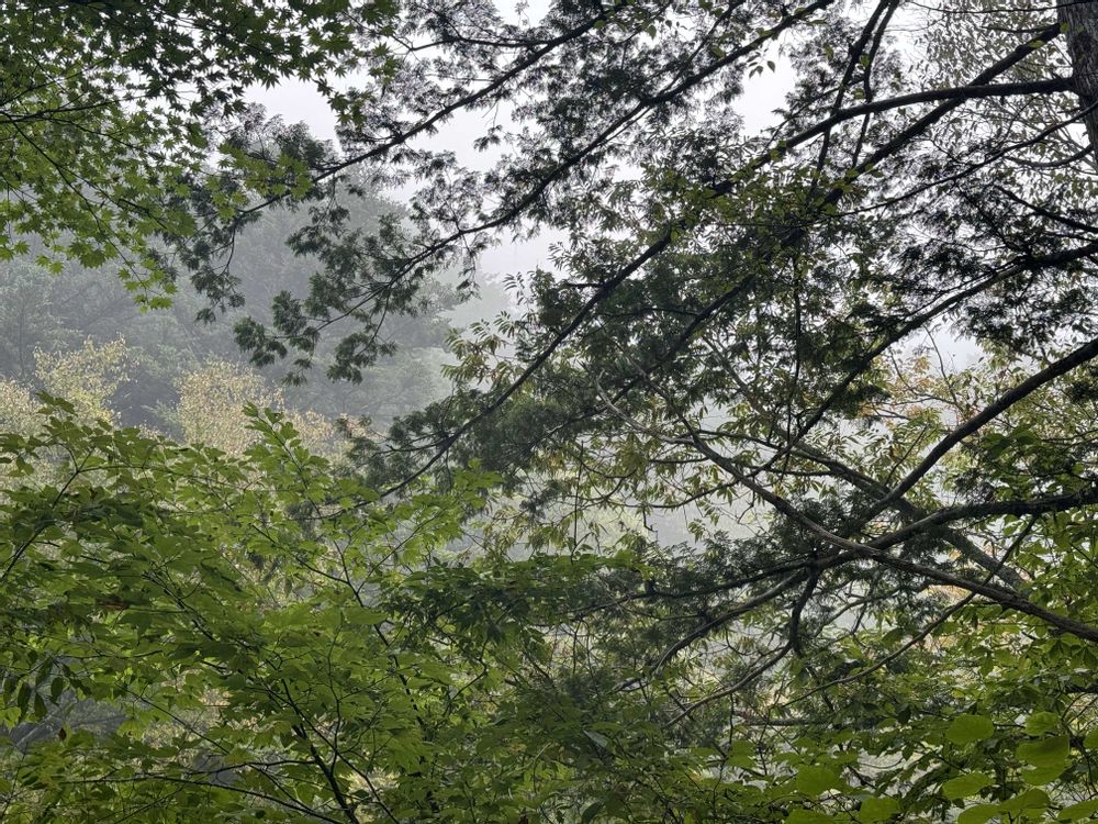 徐々にもやに消えていく木々のレイヤーを楽しみつつ少しづつ片付けを。