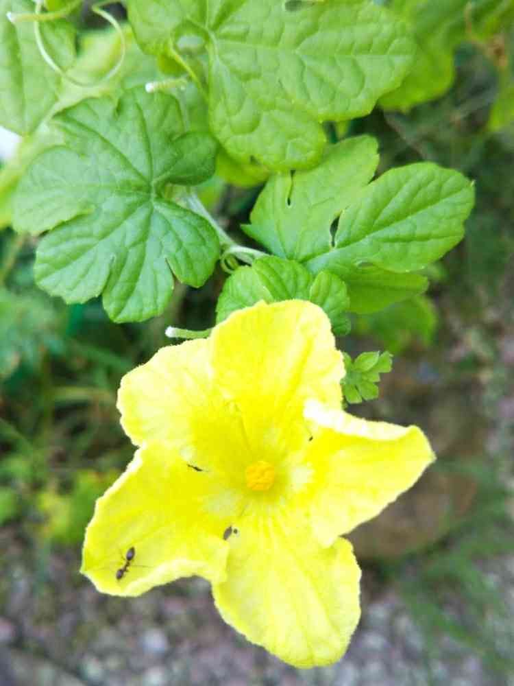 ゴーヤの花に蟻のお客様が来てくれました。