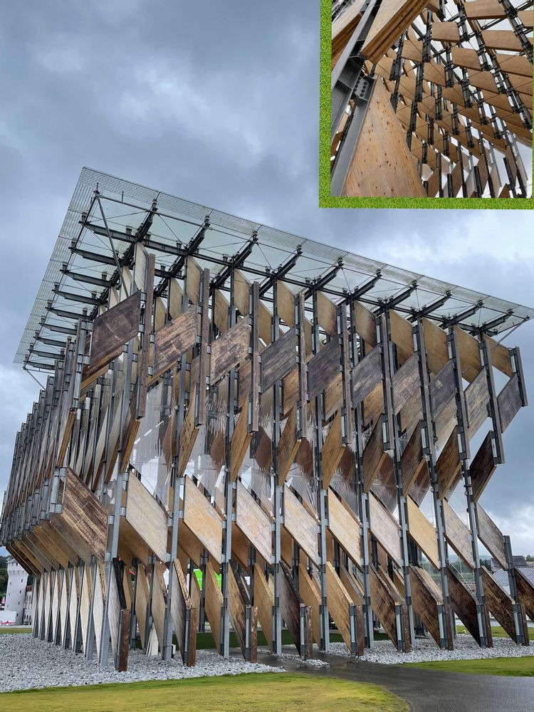 隈研吾さん設計監修のパビリオン"風の葉"(東京都晴海から移築)