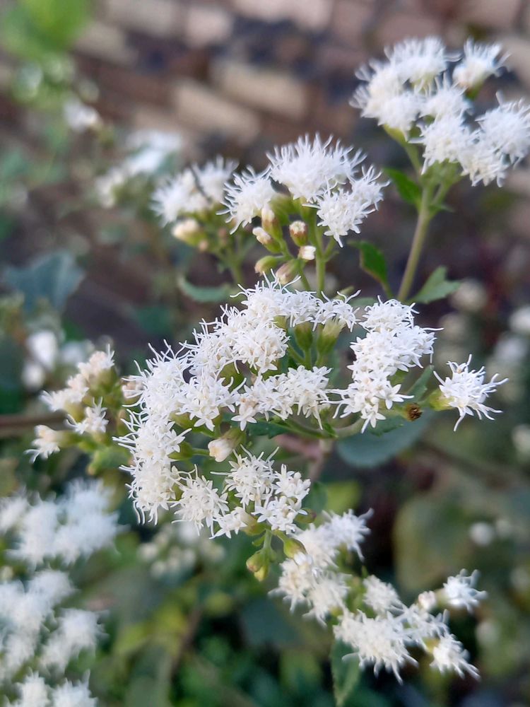 小さな花壇に白いお花中心に咲いていてとても素敵です(散歩途中のお家)