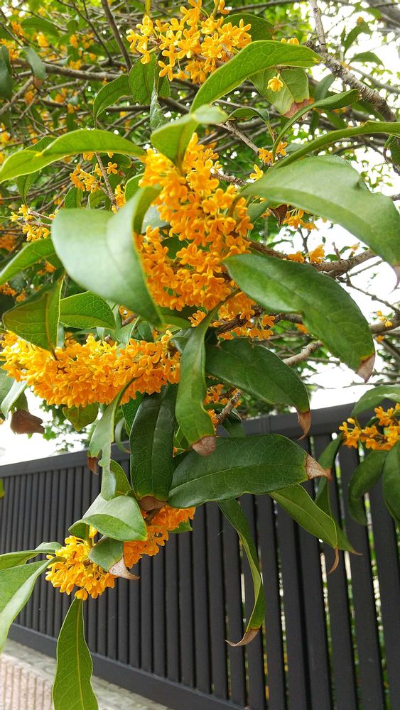 ようやく咲いた金木犀の花辺りに良い香りを漂わせるオレンジの花が心地良いこの気温のせいか咲くのが