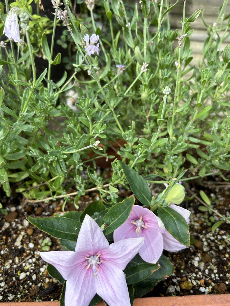 2️⃣は枯れてしまったゼラニウムの代わりに植えた桔梗とイングリッシュラベンダー🩷🤍🩷🤍