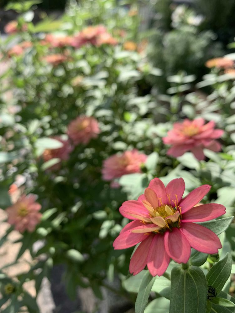 ようやくまた花が咲きだしたジニアたちが、陽の光でキラキラ輝いていてキレイでした✨✨