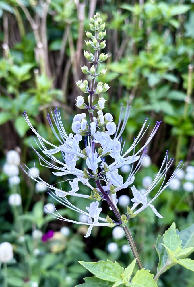 長い雄しべと雌しべがやや上向きにピンと反り、そのユニークな姿が猫の髭をイメージさせることが名前の由来だそうです。