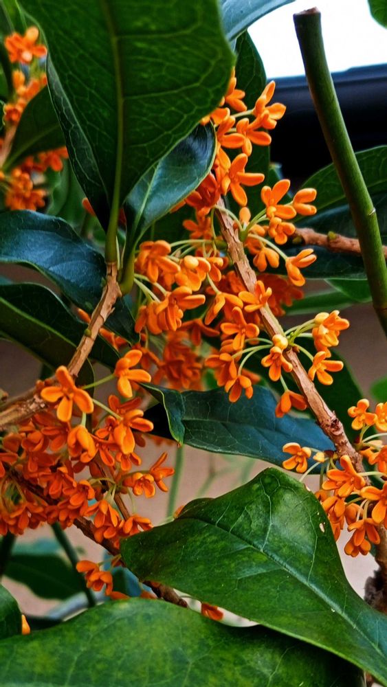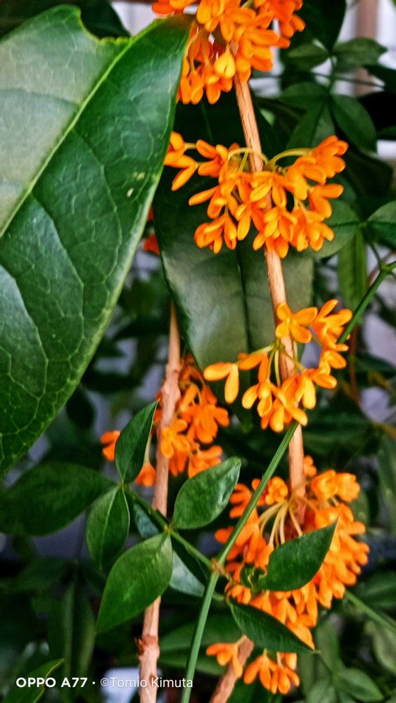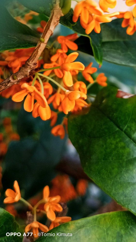 小さな庭の金木犀の花が最盛期を迎え、芳香を放っています。