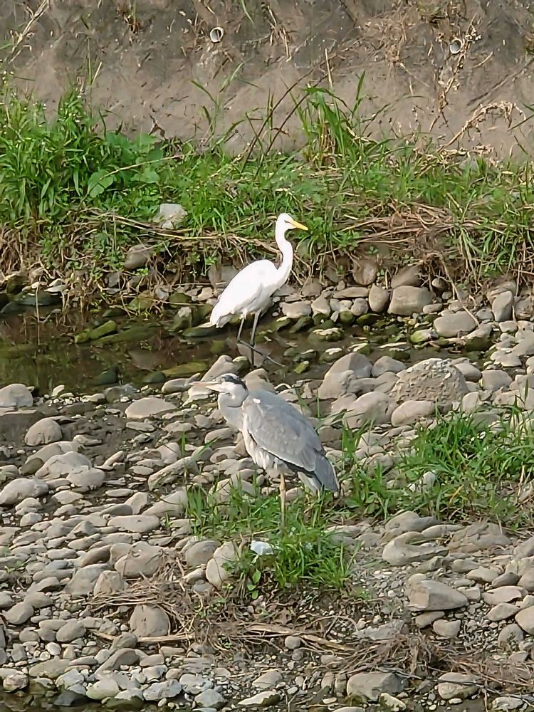 ひさびさに2羽同時に再会しました😮 色ちがいのサギさん、元気そうでした🙌