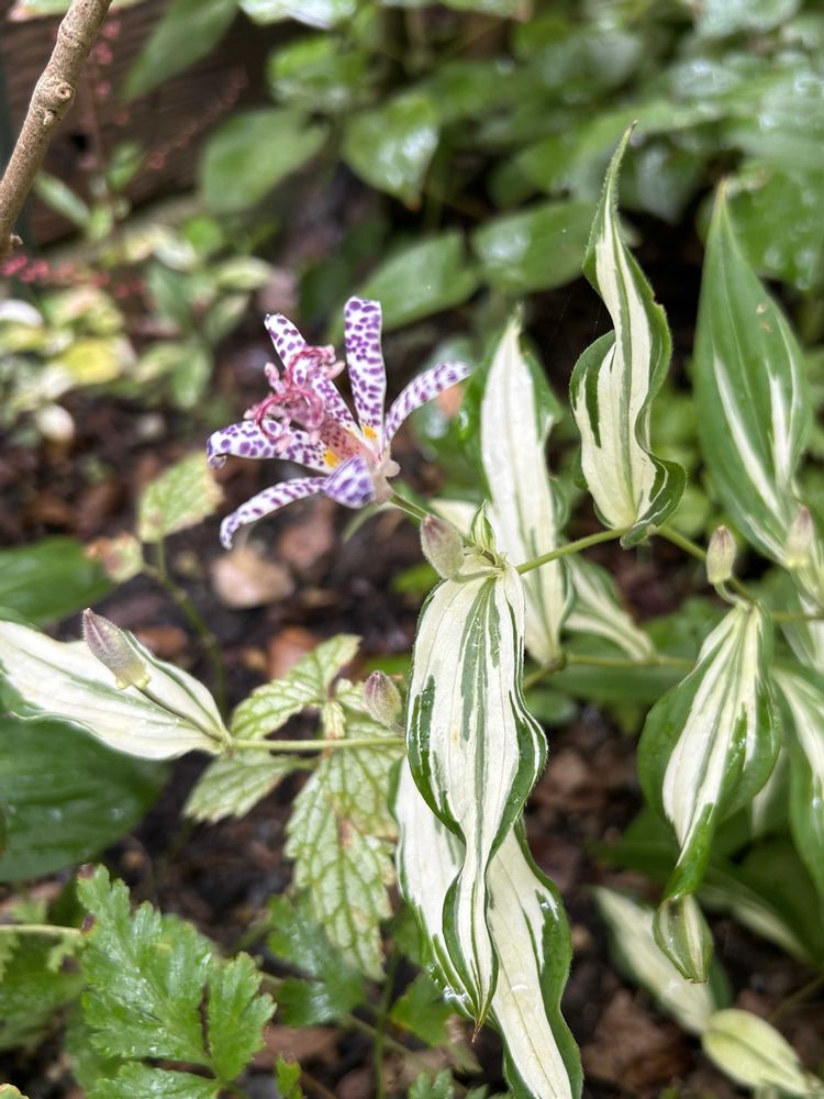 年々、植物の好みも変わって来て。ホトトギスを植えようなんて思いませんでした💦斑入りを見たら欲しくなって。初代は鉢植えで消えてしまいましたが、今回は地植えで育ってくれたので嬉しいです☺️