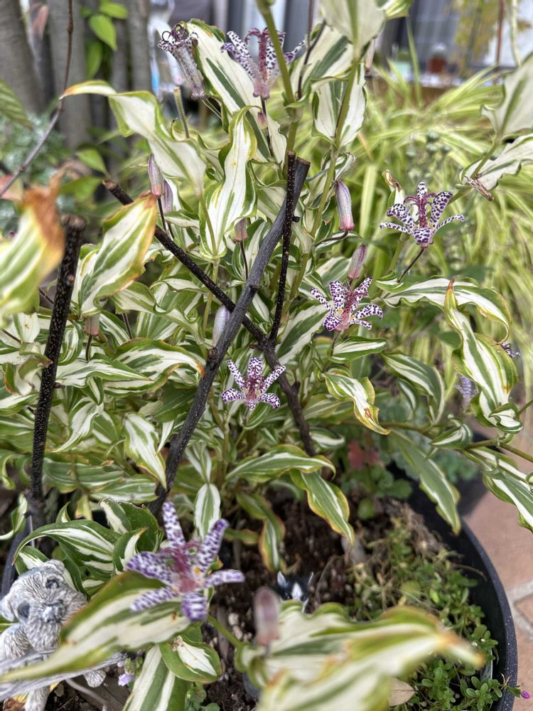 ホトトギス、斑入り葉が綺麗で2年前に購入、今年も良く咲いてくれました☺️