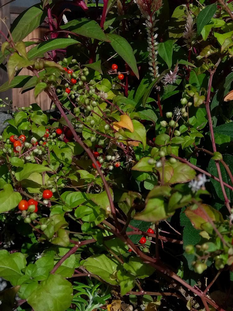 夏まえに購入したジュズサンゴがつぎつぎと赤い実をつけています
