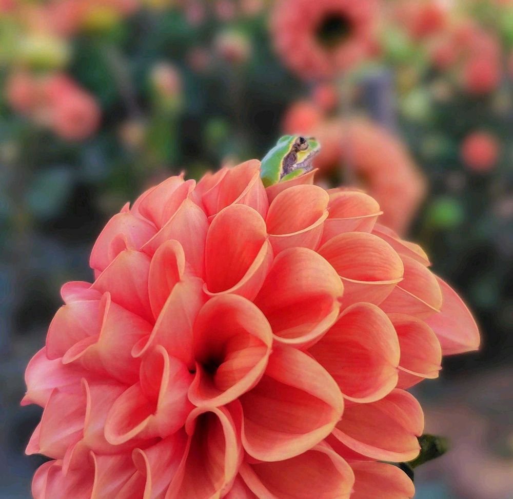 確かにダリアとカエル🐸のコンビは不思議にマッチしますね( ⑉¯ ꇴ ¯⑉ )🍊🎶