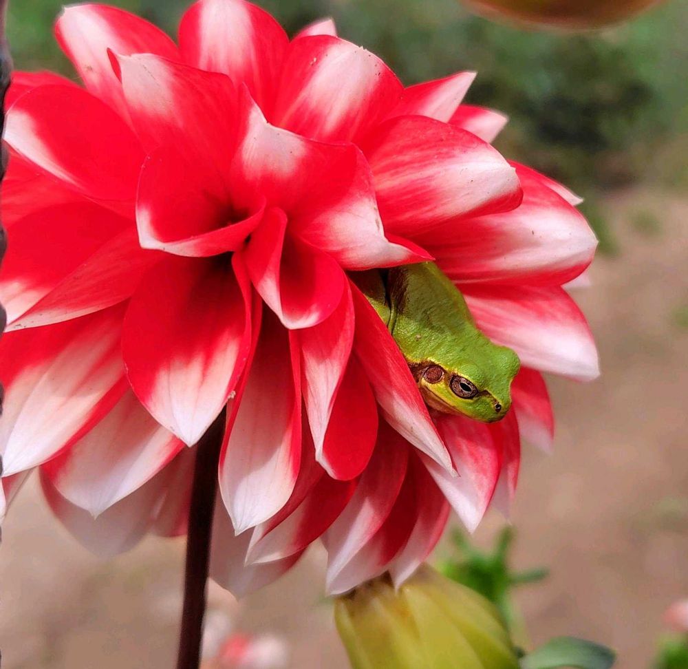 ダリアにカエル🐸·····可愛すぎてキュンキュンしっぱなしだったよ(〃艸〃)❤️