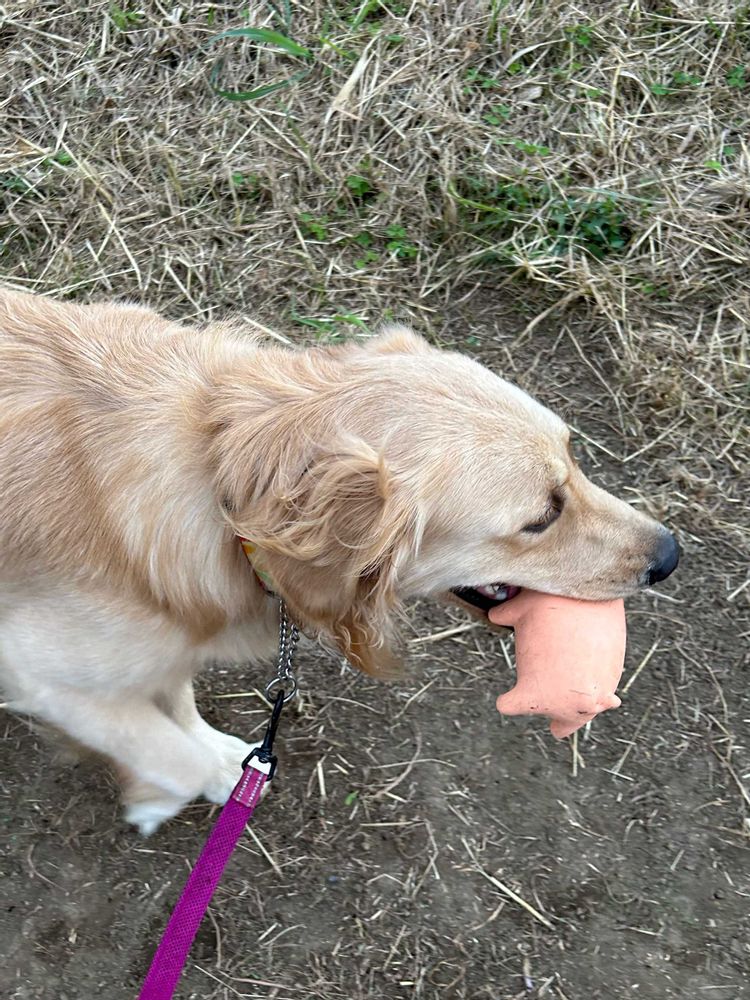 わんこは大好きな豚さんのおもちゃを咥え