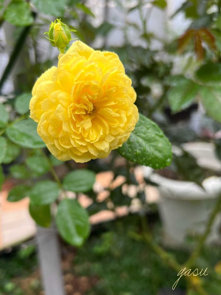ミエルドゥフォレは一輪だけ✂️したものの‥結局鉢ごと玄関軒に😅