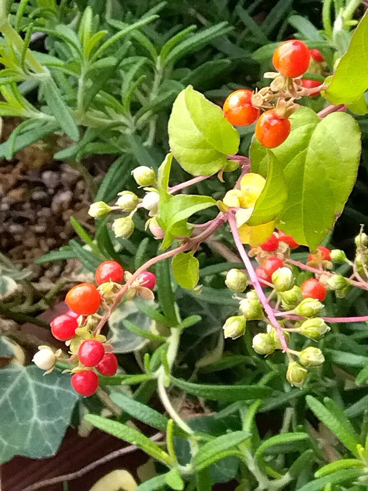 つぎつぎと赤い実をつけて、こぼれ種でまた芽をだしてきています🍀