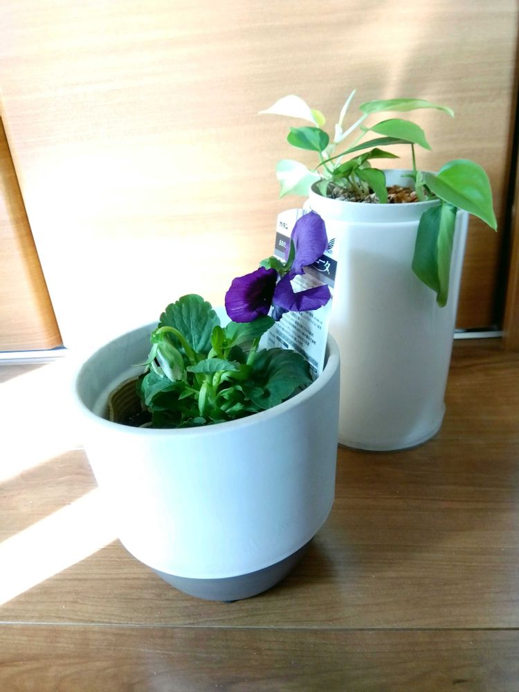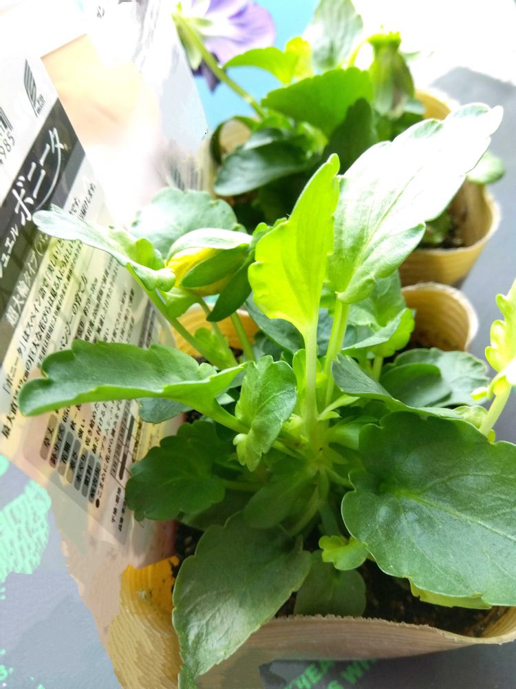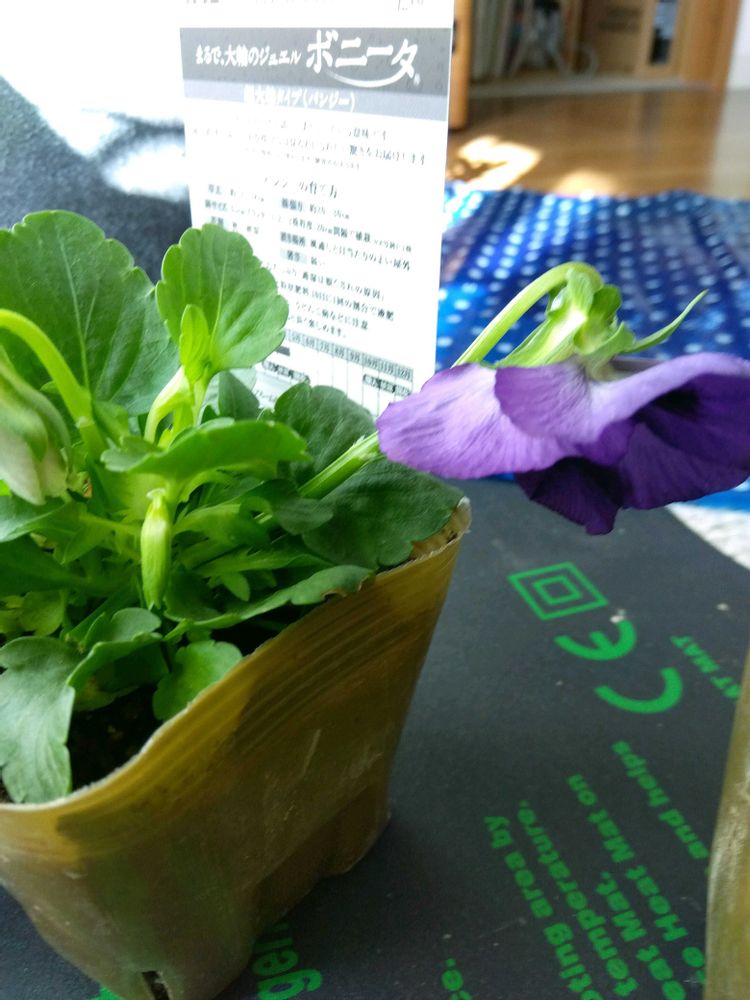 植え付けと同時にまけるカダンの「感動肥料花用」もつけていただき、紫と黄色のパンジー2株が育つサポートまで考えてるなんて。