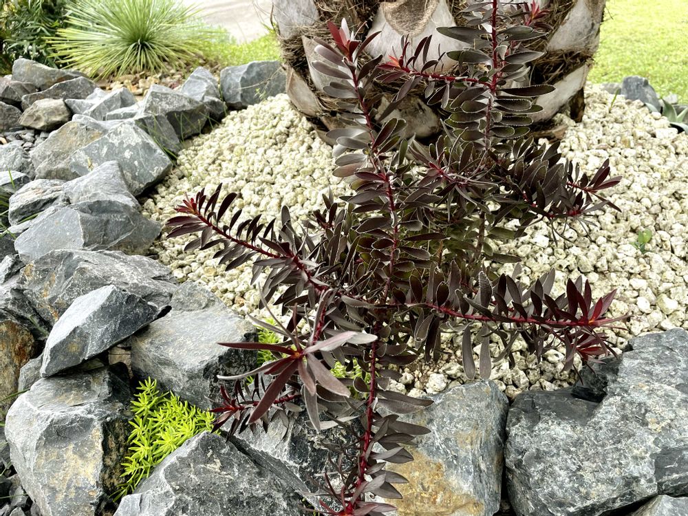 ヤシやアガベ ばかりだと黒系はなかなか無いので良いフォーカルポイントになります。