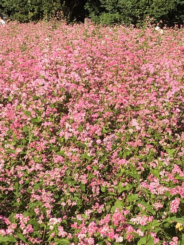 万博公園の「花の丘」にて、今日の「赤ソバ」はさらに赤くなりました。📸🌸❤️🌿😄🤗🌞👌