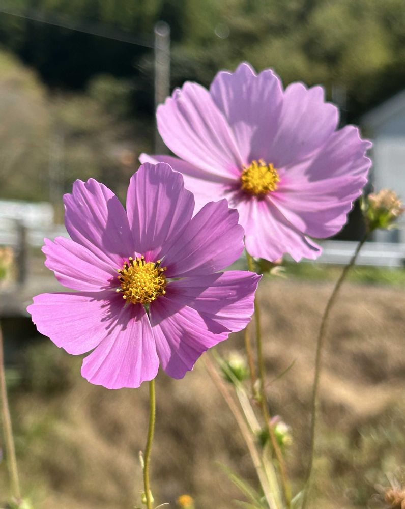 混んでいて断念したお蕎麦屋さんへ行く道中にあったコスモス🌸と田園風景です🌿