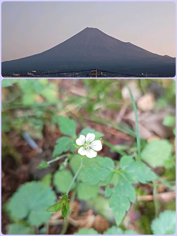 富士山とコフウロ(小風露)フウロソウ科フウロソウ属