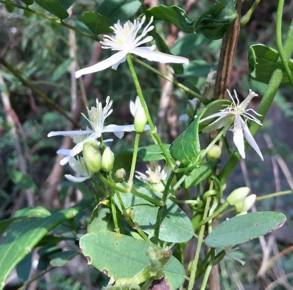 スーパーからの帰り道、用水路のフェンスの中に咲いていたセンニンソウ。