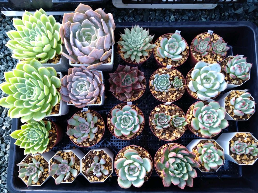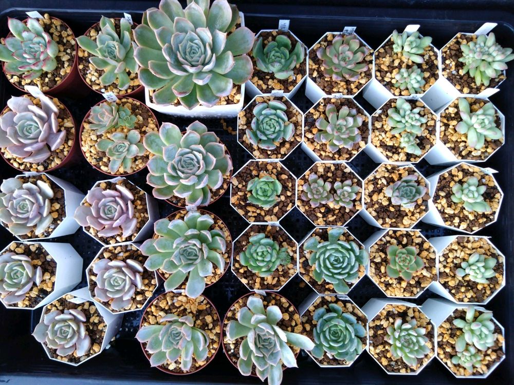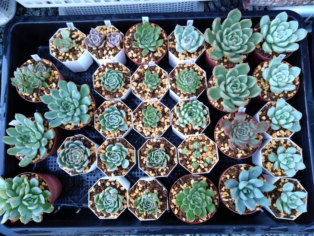 もう大きい鉢がないので2号と2.5号鉢で葉をもぎってサイズダウンさせたりして何とか全部植え付けれました🙌