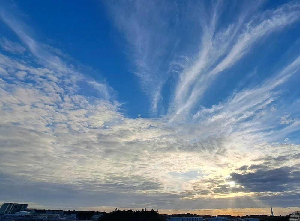 こんばんは☺。秋っぽい雲☁に青空。綺麗ですね✨。