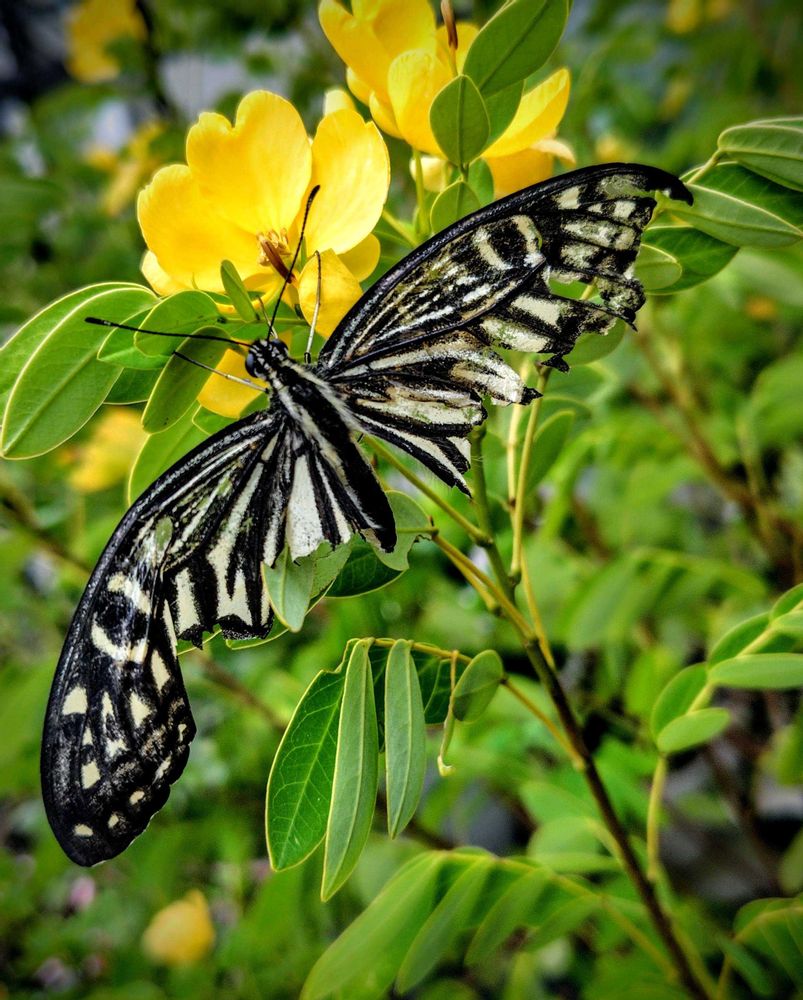 昨夕お庭を見廻っていましたら…ナミアゲハの痛々しい姿が!!🤣元気の良い🦋でしたらスマホ📱を向けただけでサッと飛んで行ってしまうのに…このナミアゲハさんはいつまでも翅を広げたままの状態でジッとしていました。きっと深い傷を受けてどうすることもできないでいたのでしょうネ…🤔人間だってそんな時ってありますよネ…😌