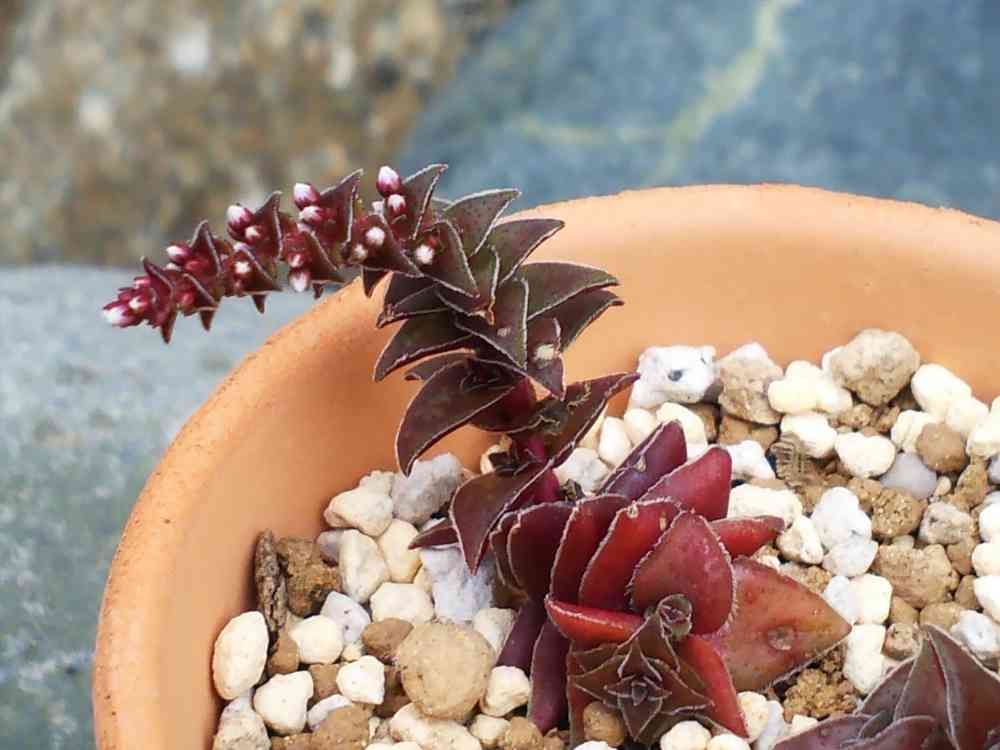 多肉、詰め詰めカップから独り立ちさせたら元気良く伸び花が付きました🌺