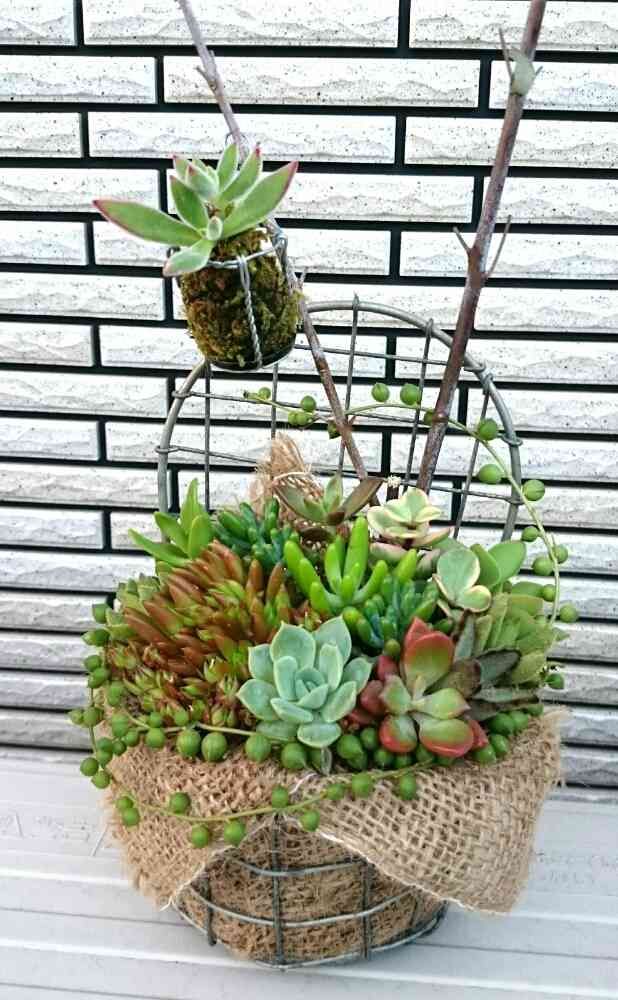 素敵素敵~(*´∇`*)❗多肉の寄せ植え何てサイコーですね🍀あの針金はシャンパンの栓についてるやつですね。いいなあ~🎵