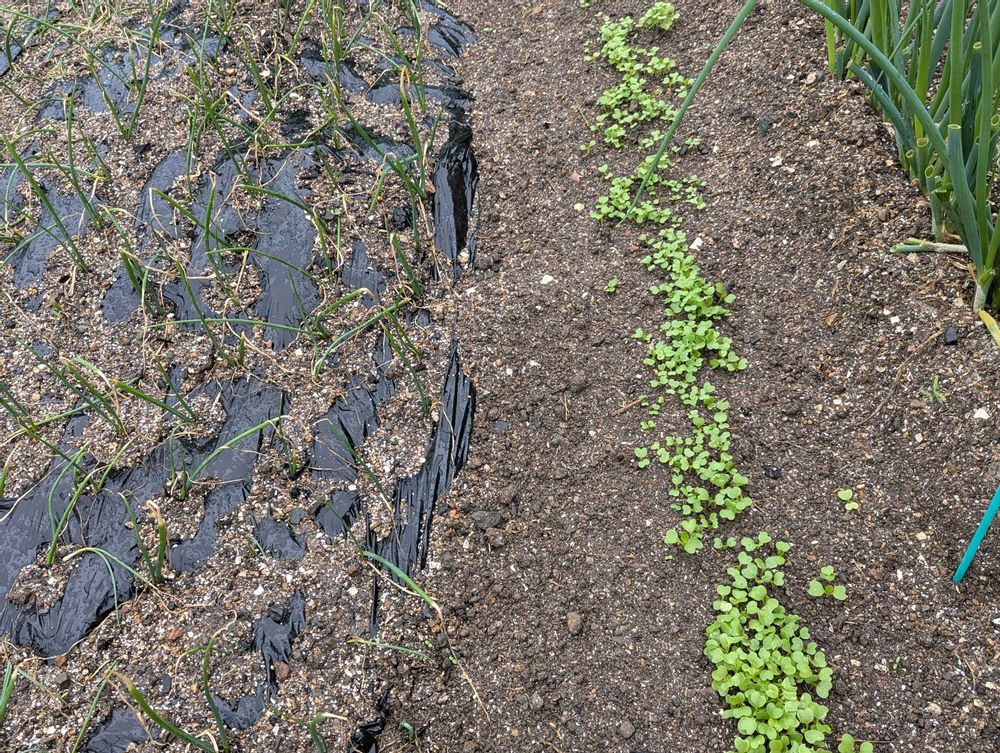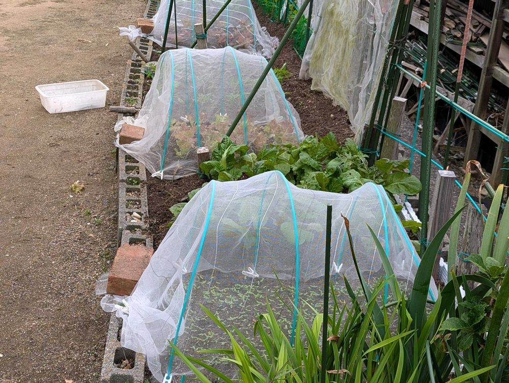 ⑤サニーレタス、他、🌂の予報で防虫ネットはり、14時〜🌂降り始めました🙋一雨事に寒くなる、ほんまやね〜😱