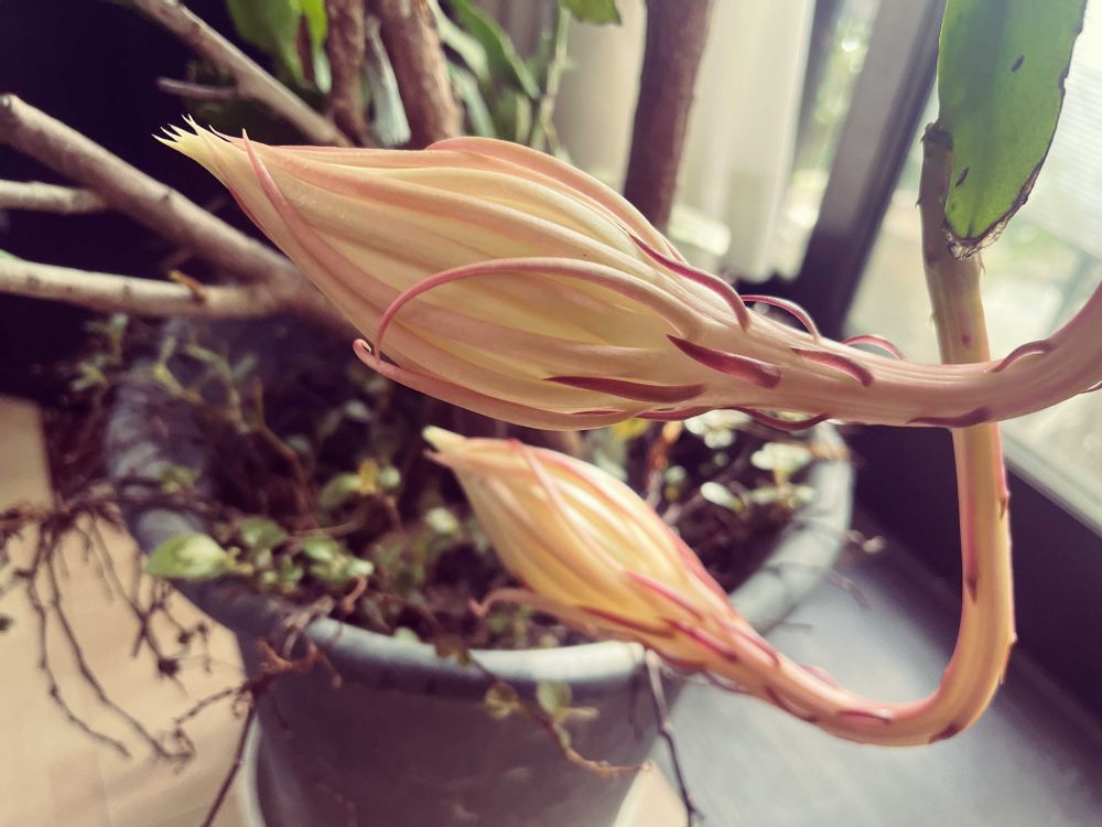 月下美人、4つの蕾の内3つは今夜咲きそうです。