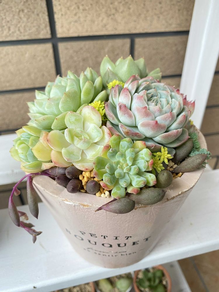 自作リメ鉢に寄せ植えしました(˶ᐢωᐢ˶)