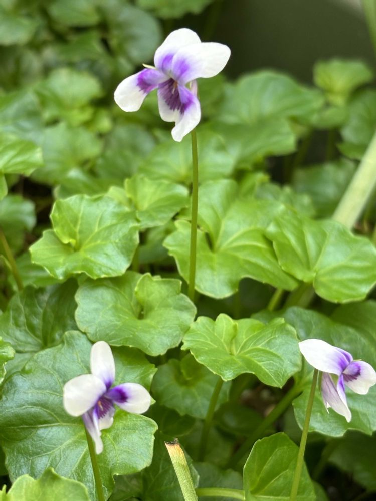 5 葉がツヤツヤ の2年目🐼パンダスミレ 咲き出しました