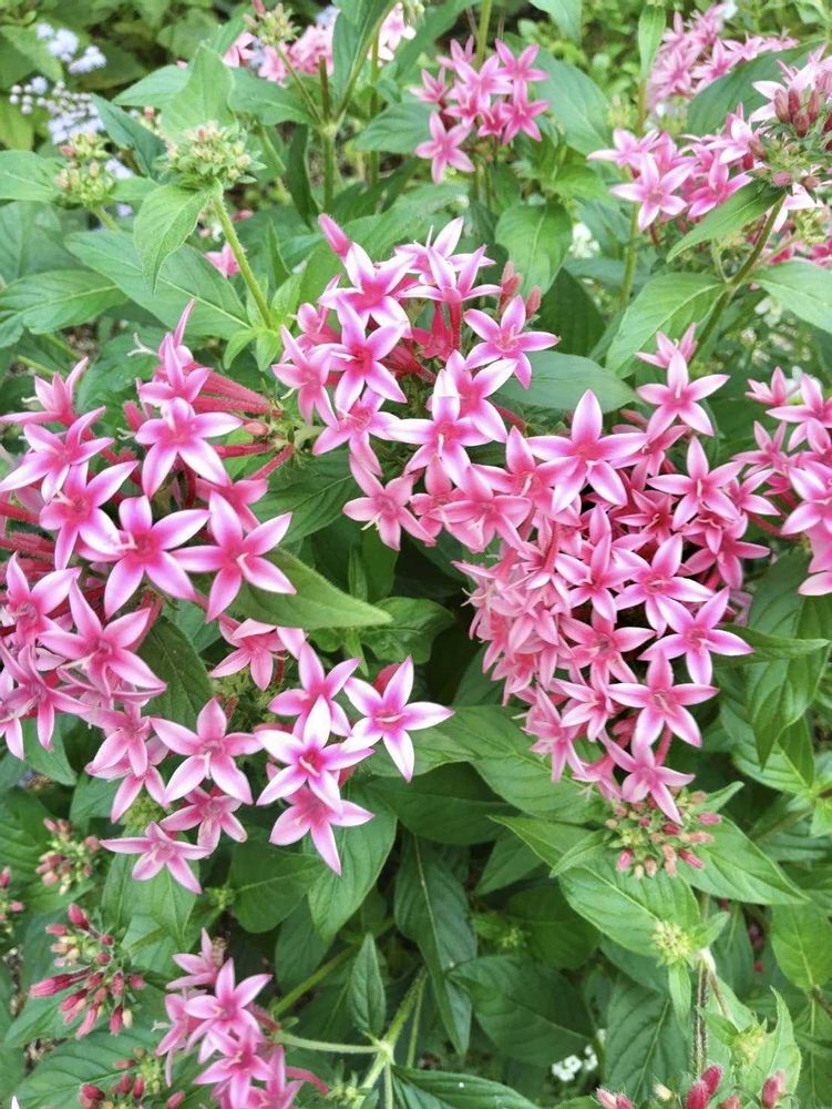 ペンタスとハナトラノオ。ピンク色で可愛らしく咲いていましたよ😆💕💕