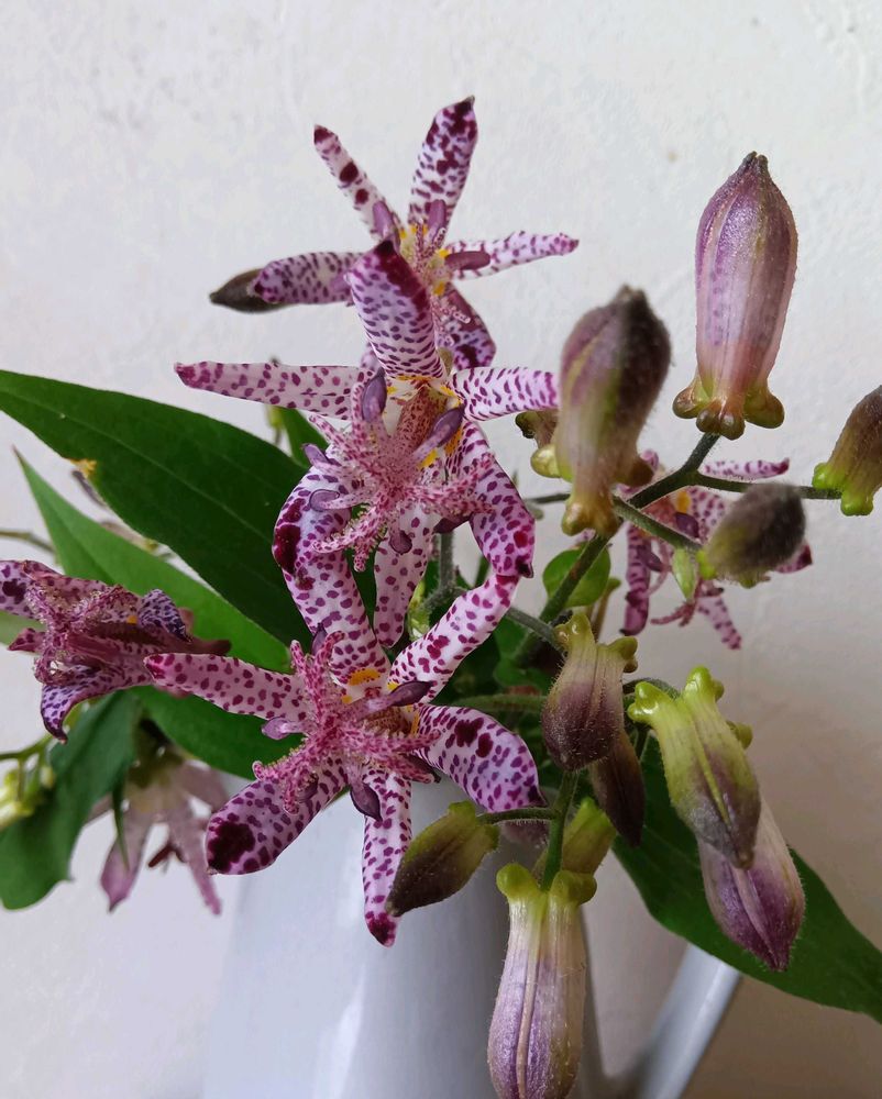 名前の由来になった柄模様のホトトギス ほとんど抜いてしまいましたが 片隅で倒れてしまって咲いていました🎶
